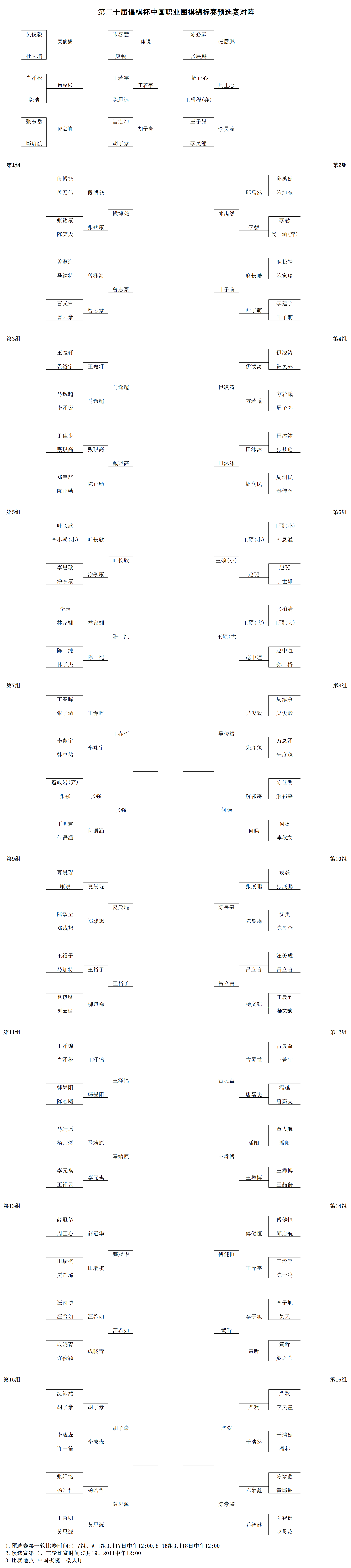第二十届倡棋杯中国职业围棋锦标赛预选赛第二轮结果